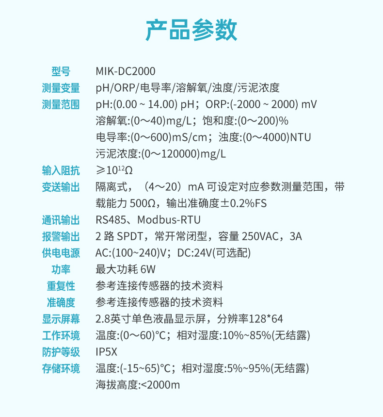 適用場合:本產(chǎn)品為水質(zhì)通用型控制器,是一款智能在線化學分析儀器,廣泛應用于火電、化工化肥、冶金、環(huán)保、制藥、生化、食品和自來水等各個行業(yè)。通用型控制器與本公司多種水質(zhì)系列數(shù)字傳感器配套使用,對溶液中的 pH、ORP、電導率、溶解氧、濁度、污泥濃度等水質(zhì)參數(shù)進行連續(xù)監(jiān)測。連續(xù)監(jiān)測數(shù)據(jù)通過變送輸出連接記錄儀實現(xiàn)遠傳監(jiān)控與記錄,也可以連接 RS485 接口通過 Modbus-RTU 協(xié)議與計算機通訊,從而實現(xiàn)計算機對儀表監(jiān)控與記錄。