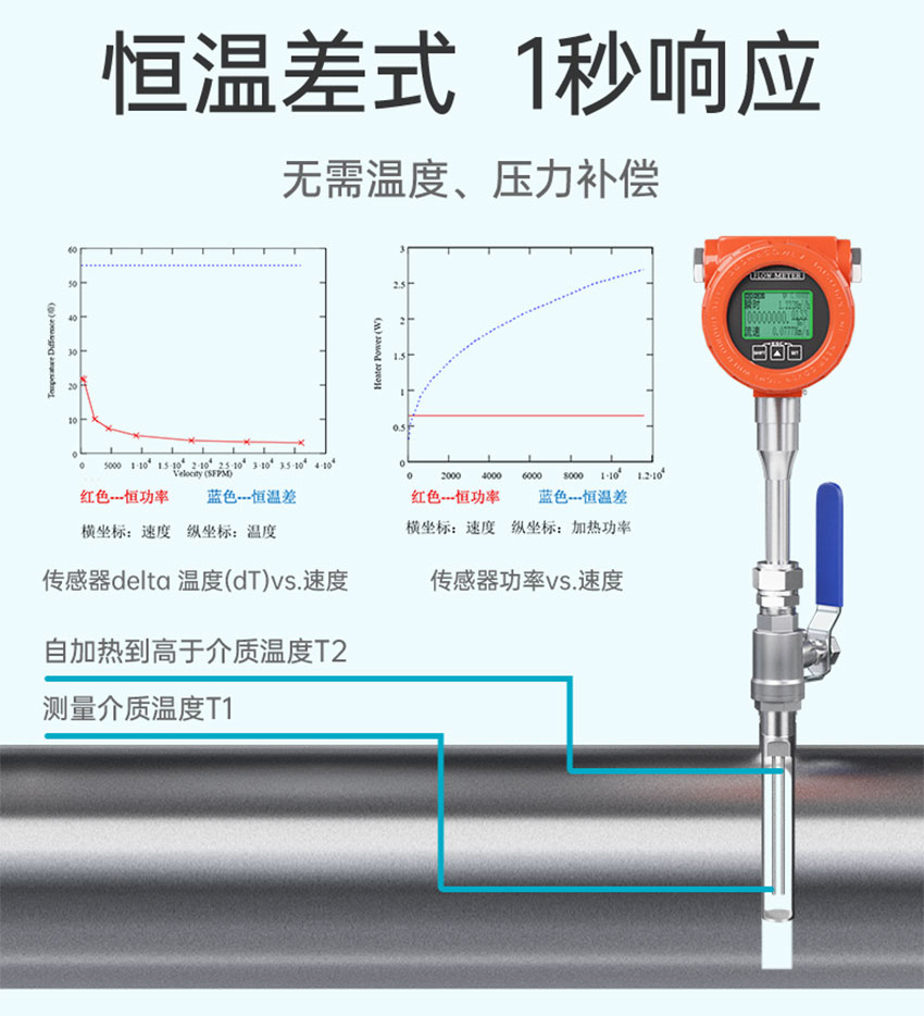 適用場合:熱式氣體質(zhì)量流量計(jì)是基于熱擴(kuò)散原理而設(shè)計(jì)的,該儀表采用恒溫差法對氣體進(jìn)行準(zhǔn)確測量。具有體積小、數(shù)字化程度高、安裝方便,測量準(zhǔn)確等優(yōu)點(diǎn),廣泛應(yīng)用于氣體測量,煙氣測量,壓縮空氣測量,化工腐蝕性氣體測量等各式氣體流量計(jì)量。