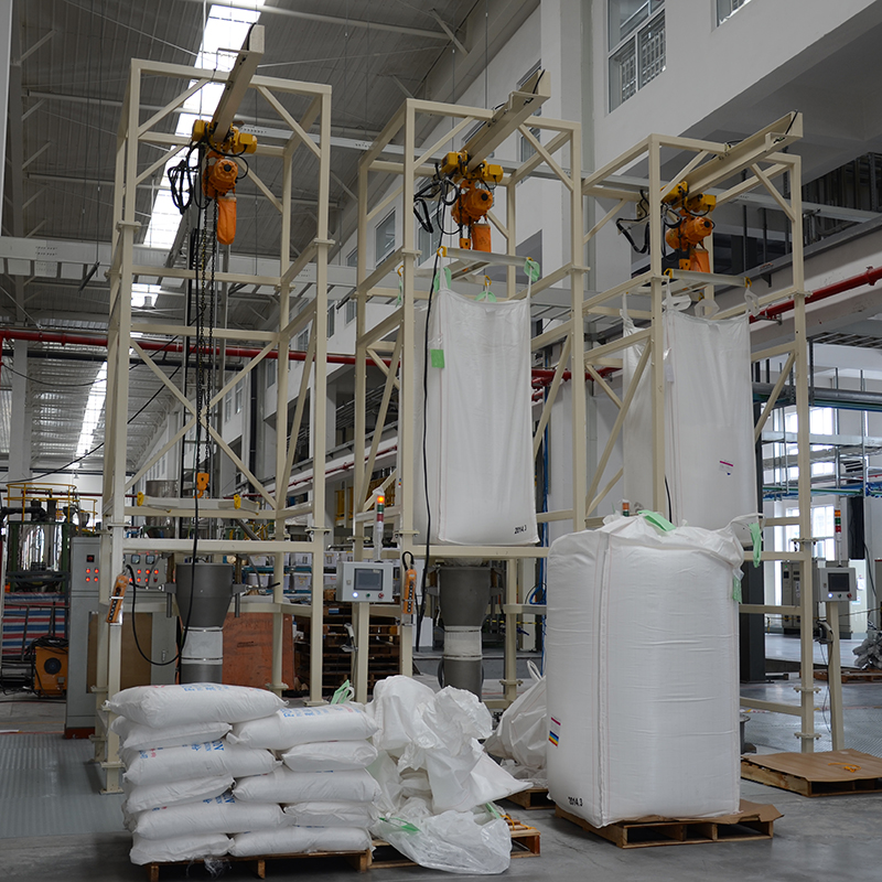 噸袋解包站由鋼架、電動葫蘆、提升組件、卸料組件、推揉組件等組成,用于噸袋物料的解包和投料。